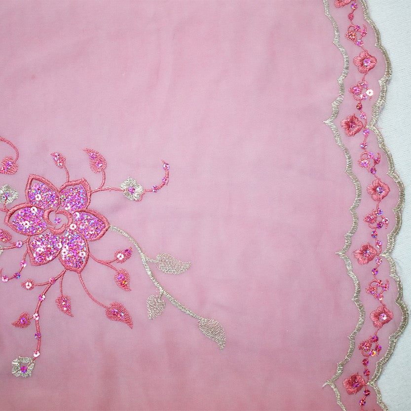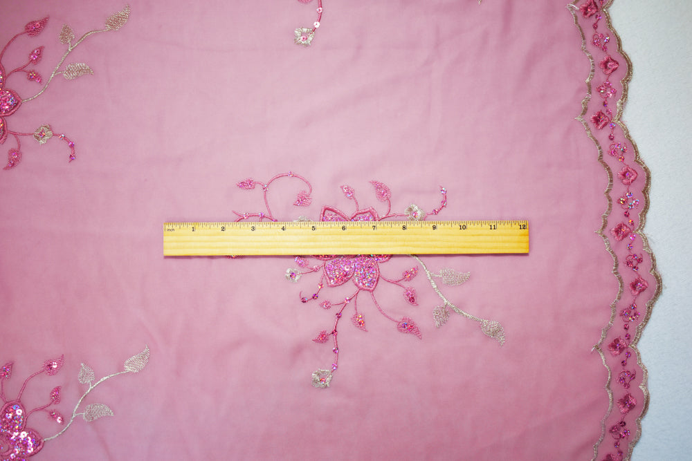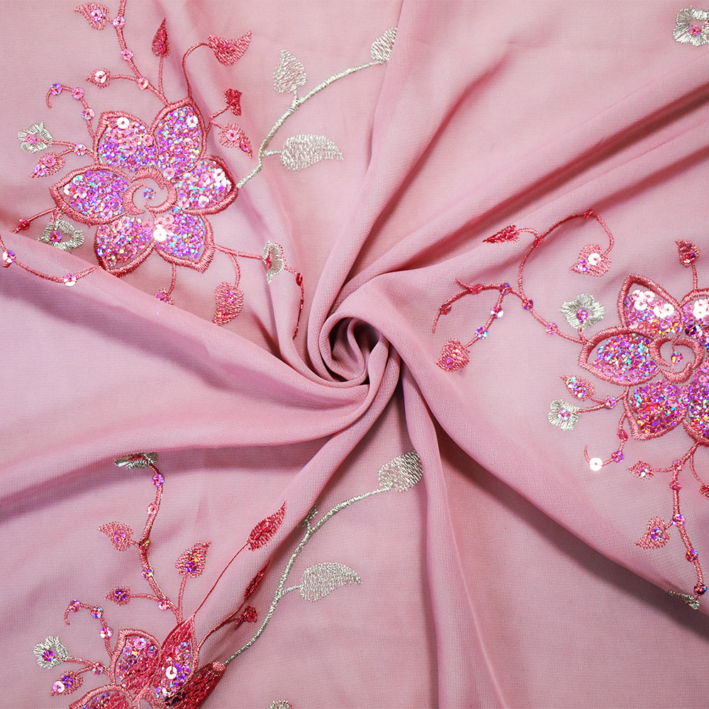 Mauve Pink-Silver Polyester Embroidered Floral Sequin Scallop Chiffon Woven Fabric