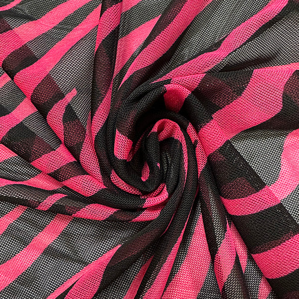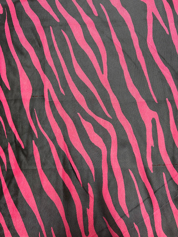 Neon Pink and Black Zebra Print Stretch Mesh Fabric