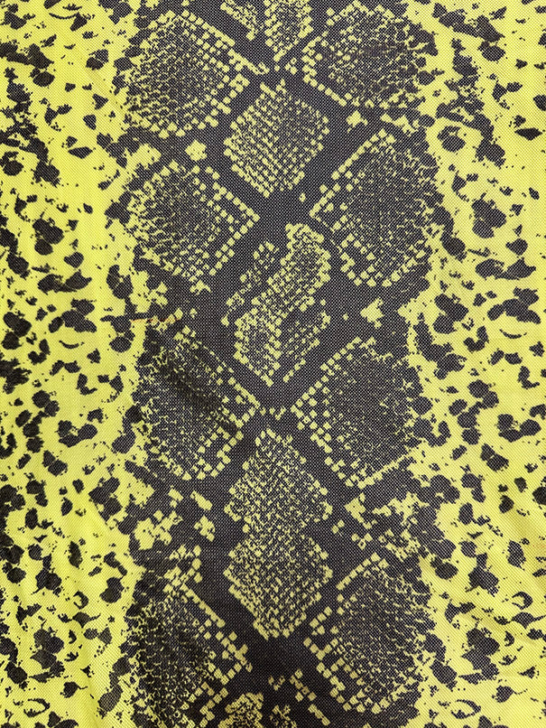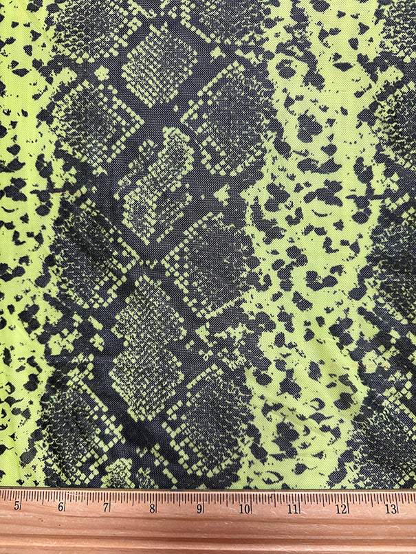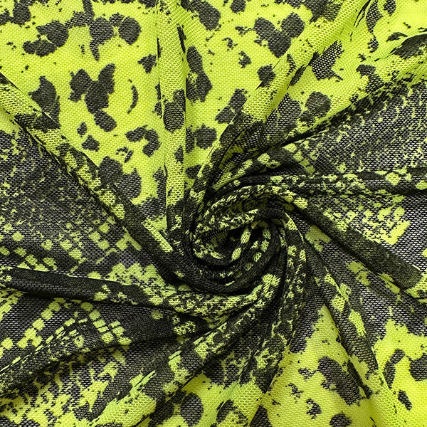 Neon Yellow Green and Black Snakeskin Stretch Mesh Fabric