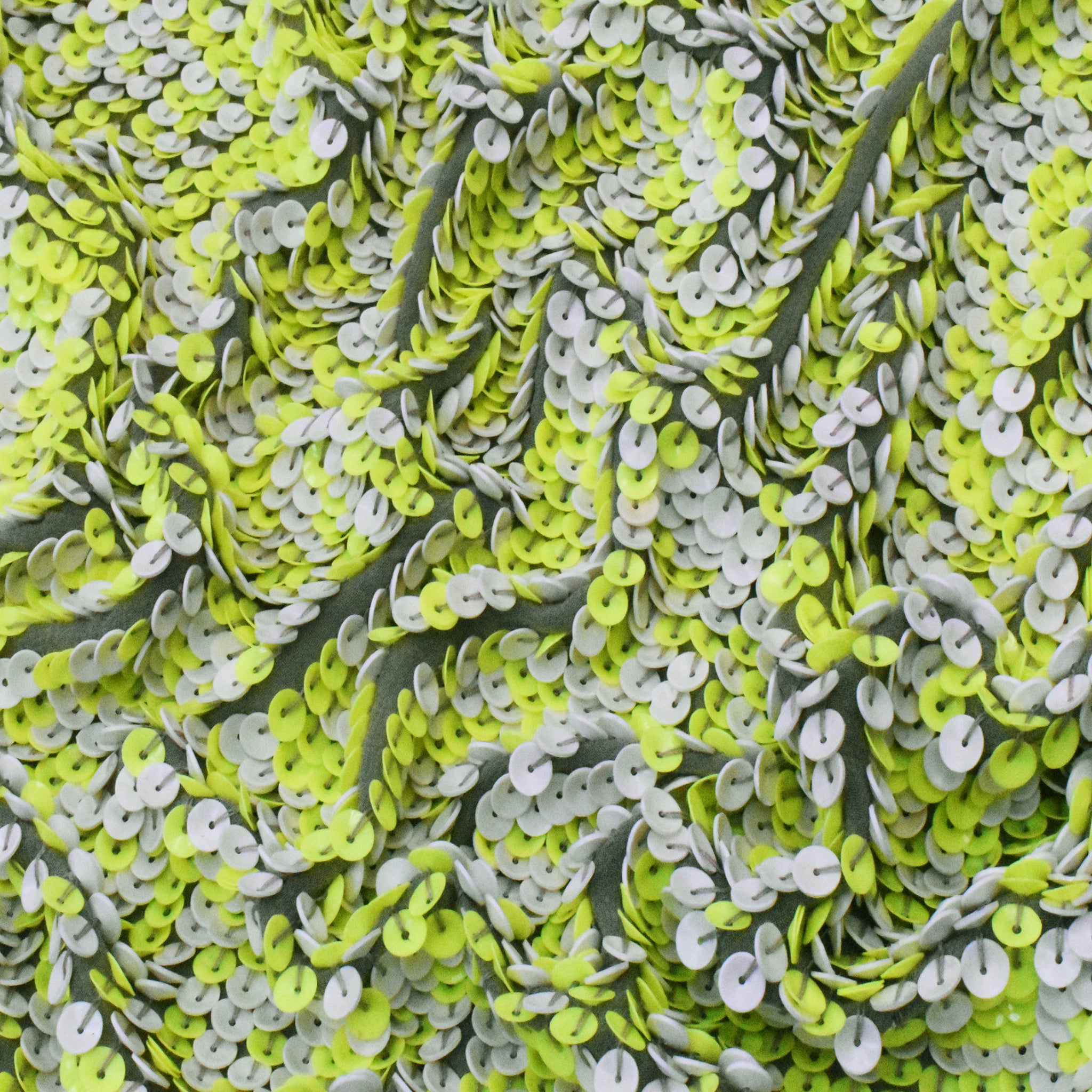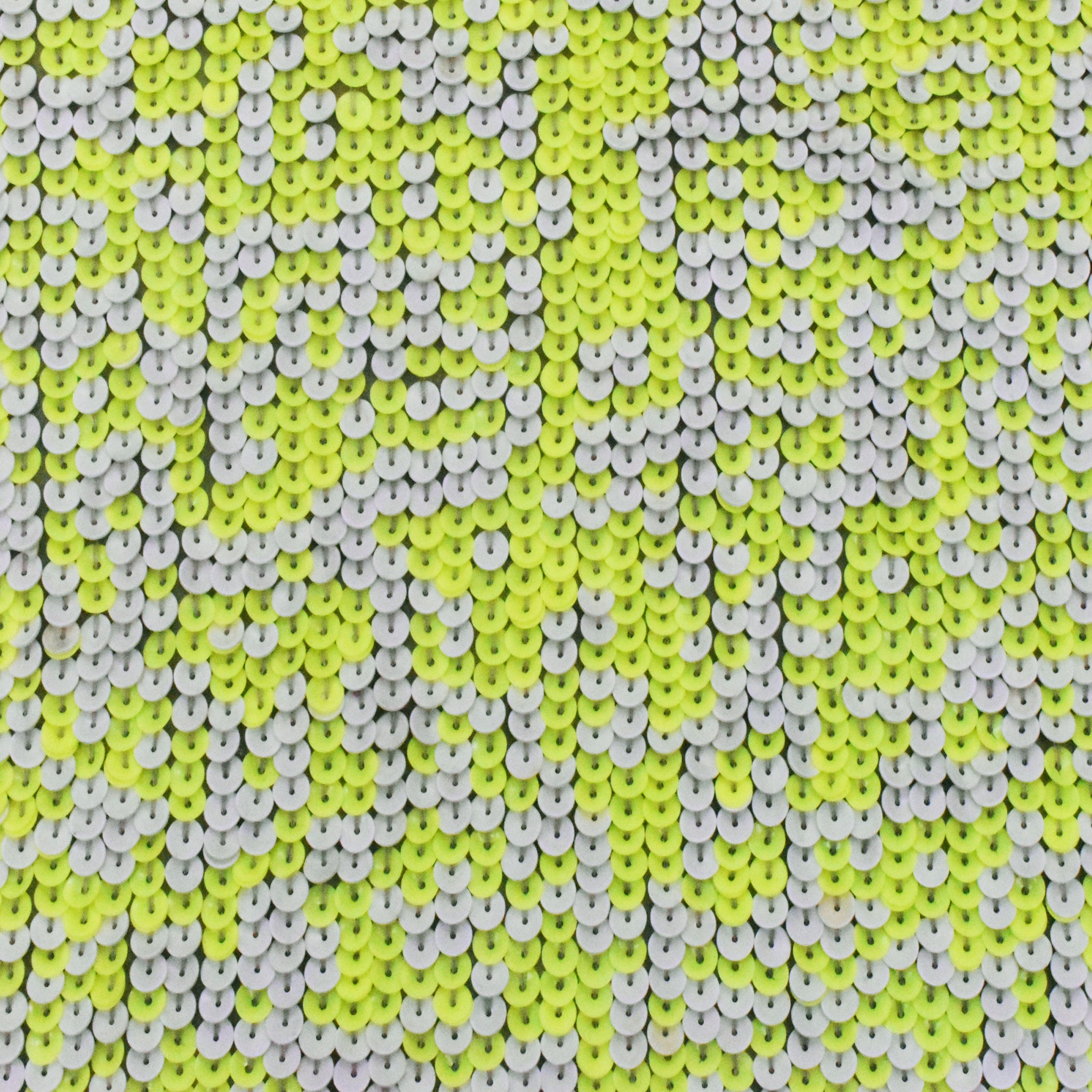 -Neon yellow and ivory sequins embellished on a 100% silk woven fabric