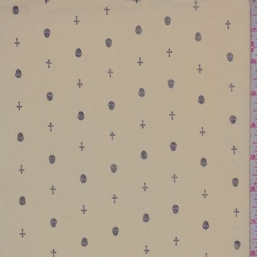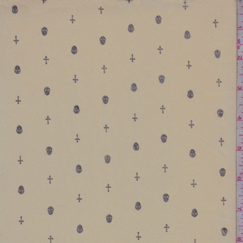 Pale Brown/Gold Mini Skull/Cross Georgette Fabric