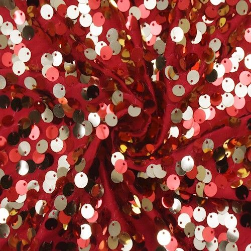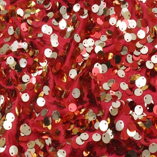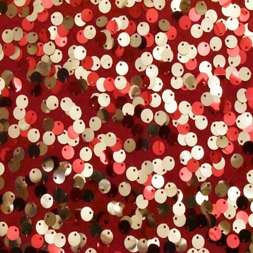 Red/Festive Gold Sequined Knit Fabric