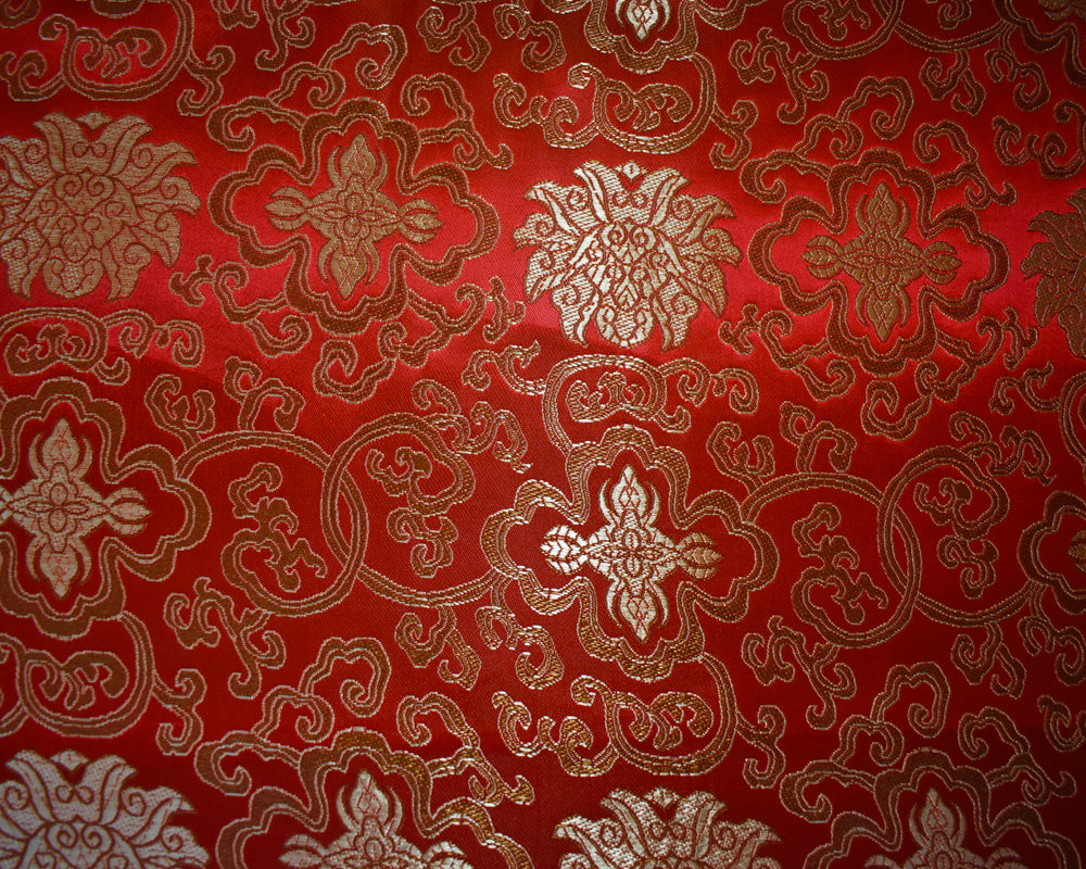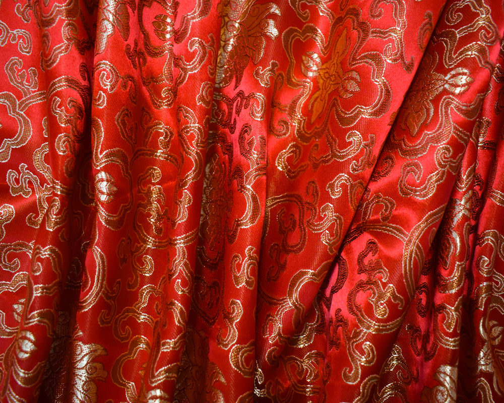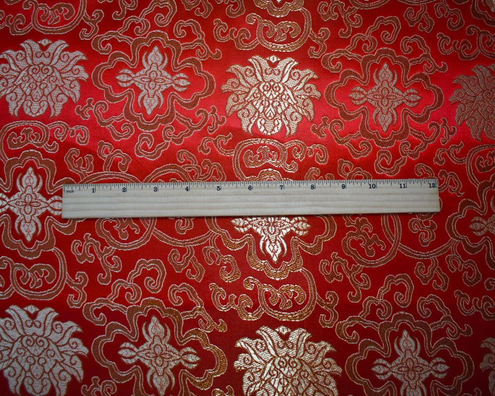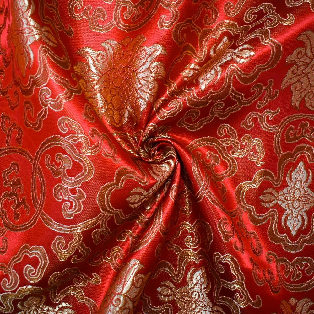Red-Yellow-Multi Polyester Floral Crest Vine Chinese Brocade Woven Fabric