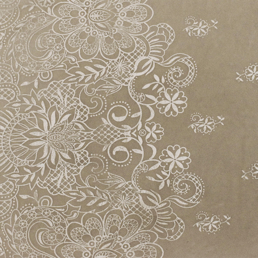 Sand Beige-White Floral Border Printed Nylon Mesh Knit Fabric