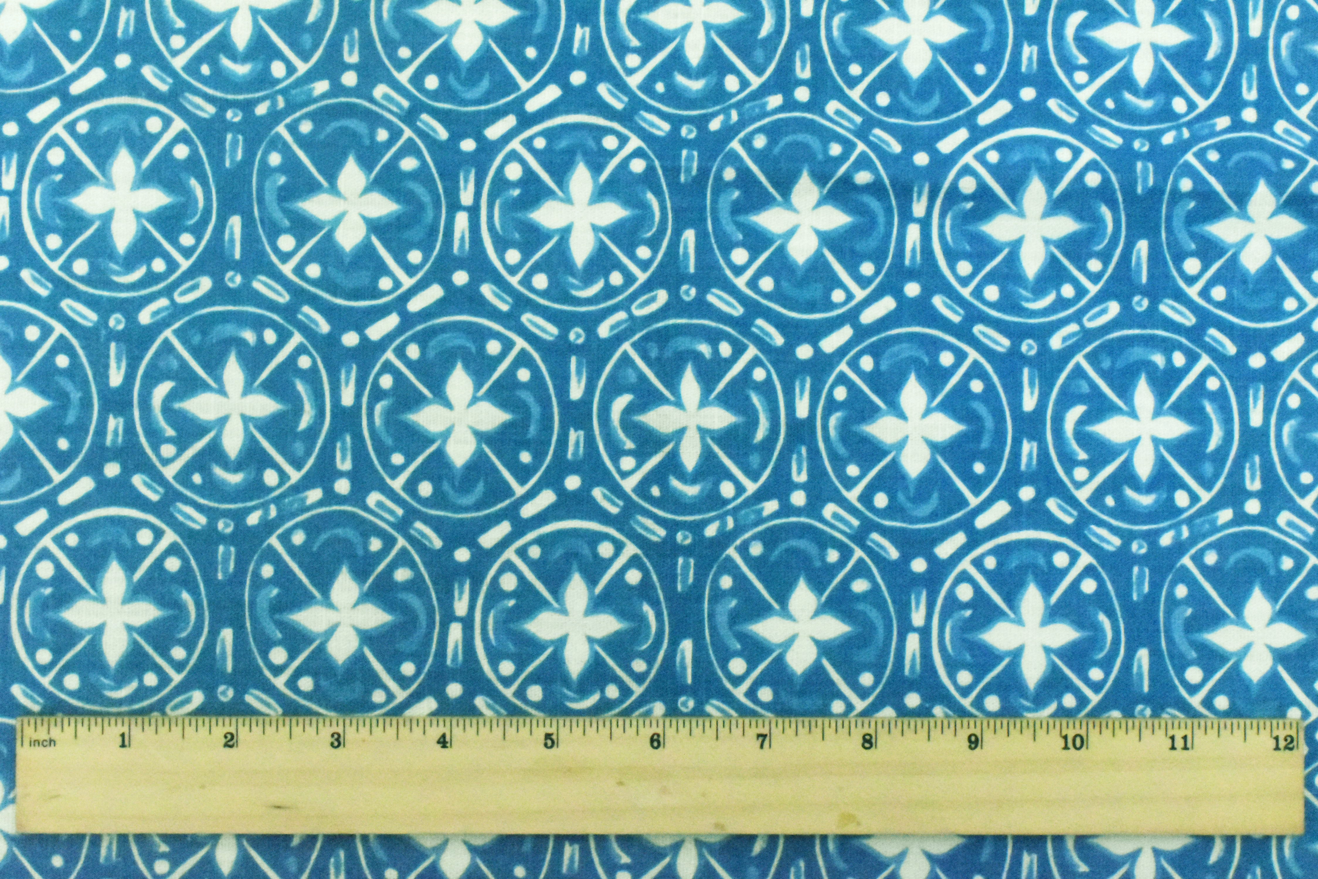 Vacay Blue-Ivory Abstract Tile Printed Slub Home Decorating Fabric