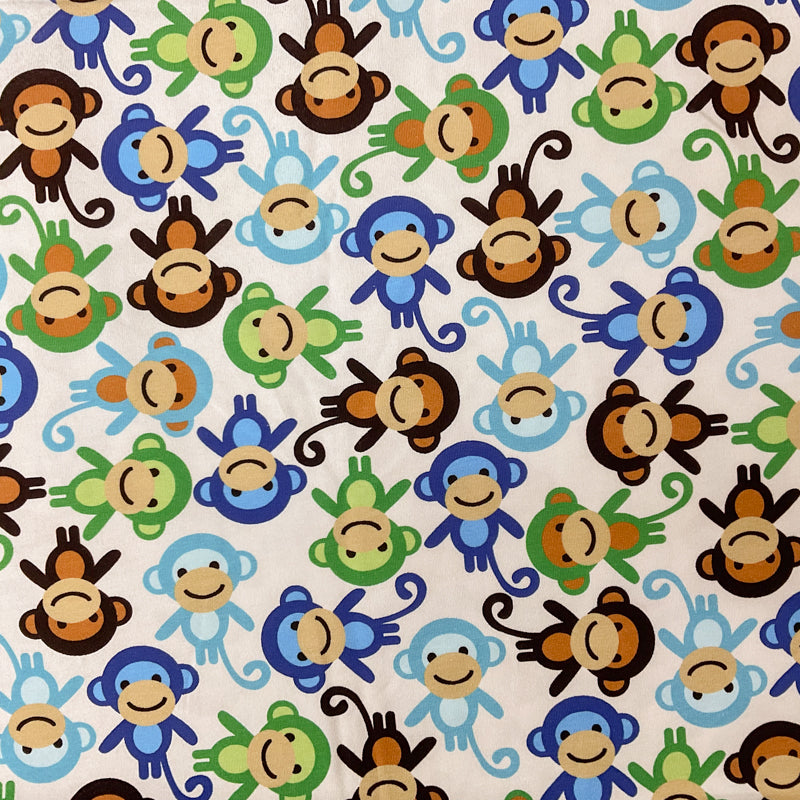 2 YD PC- Beige-Blue-Green Urban Zoologie Knits Monkey Print Remnant Fabric
