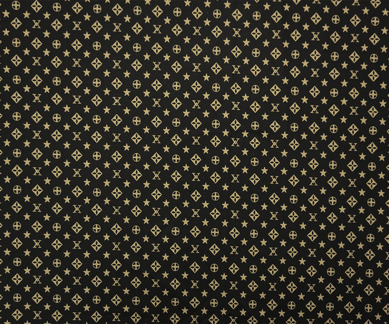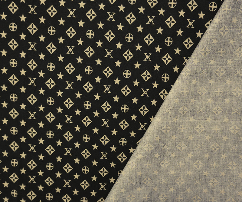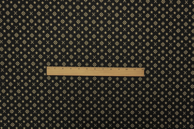 Beige-Black Cotton Stretch Geometric Print Poplin Woven Fabric