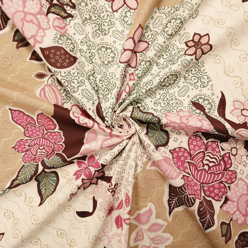 Beige-Ivory-Multi Cotton Floral Printed Lawn Woven Fabric