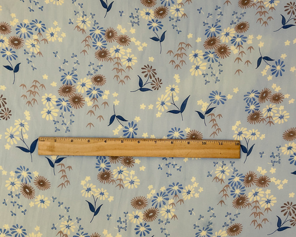 Blue-Yellow-Brown Cotton Floral Printed Voile Woven Fabric