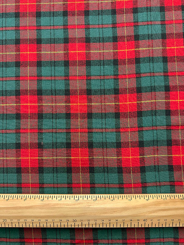 Green and Red Multi Yarn Dyed Plaid Flannel Fabric