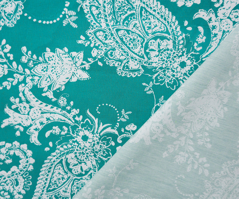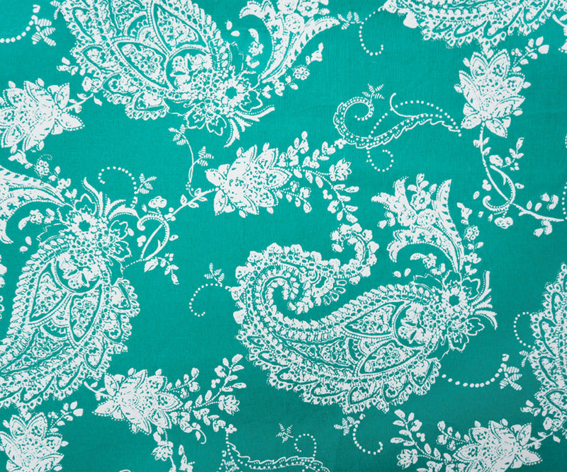 Teal-White Cotton Paisley Printed Poplin Woven Fabric