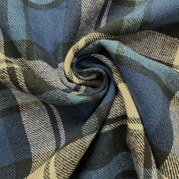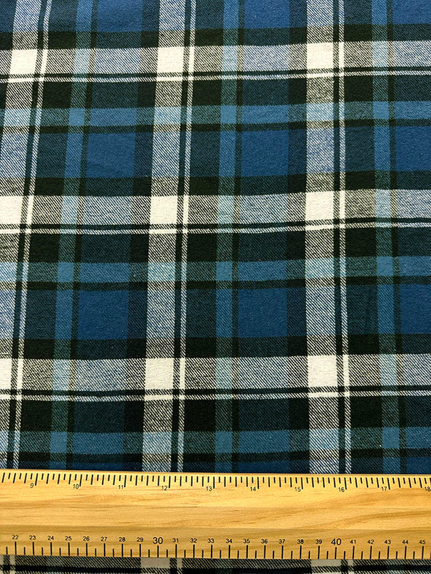 White and Blue Multi Yarn Dyed Plaid Flannel Fabric