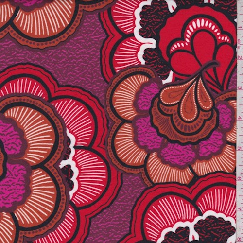 Orange/Pink/Red Scallop Floral Lawn Fabric