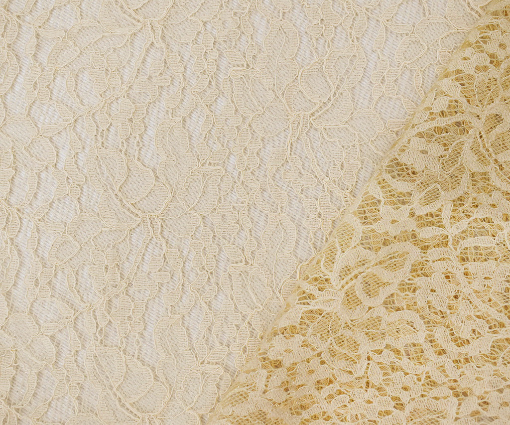 Pastel Beige Cotton Nylon Floral Lace Mesh Knit Fabric
