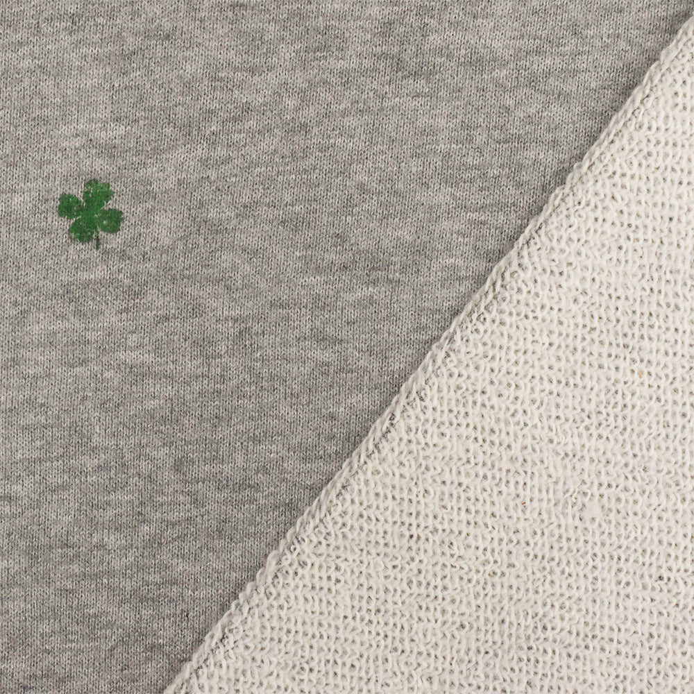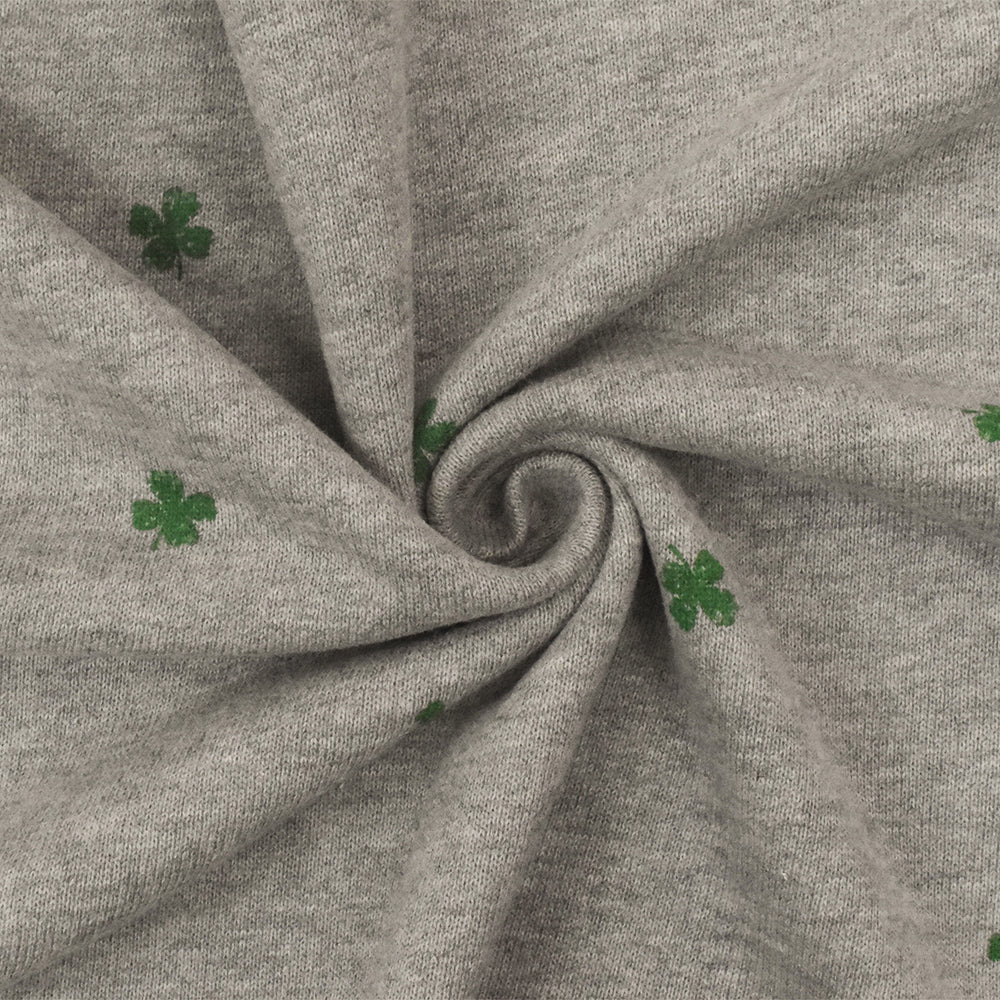 Static Gray-Green Mini Clover Printed Cotton French Terry Knit Fabric