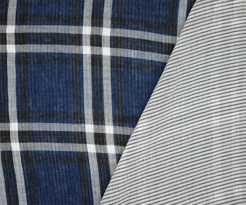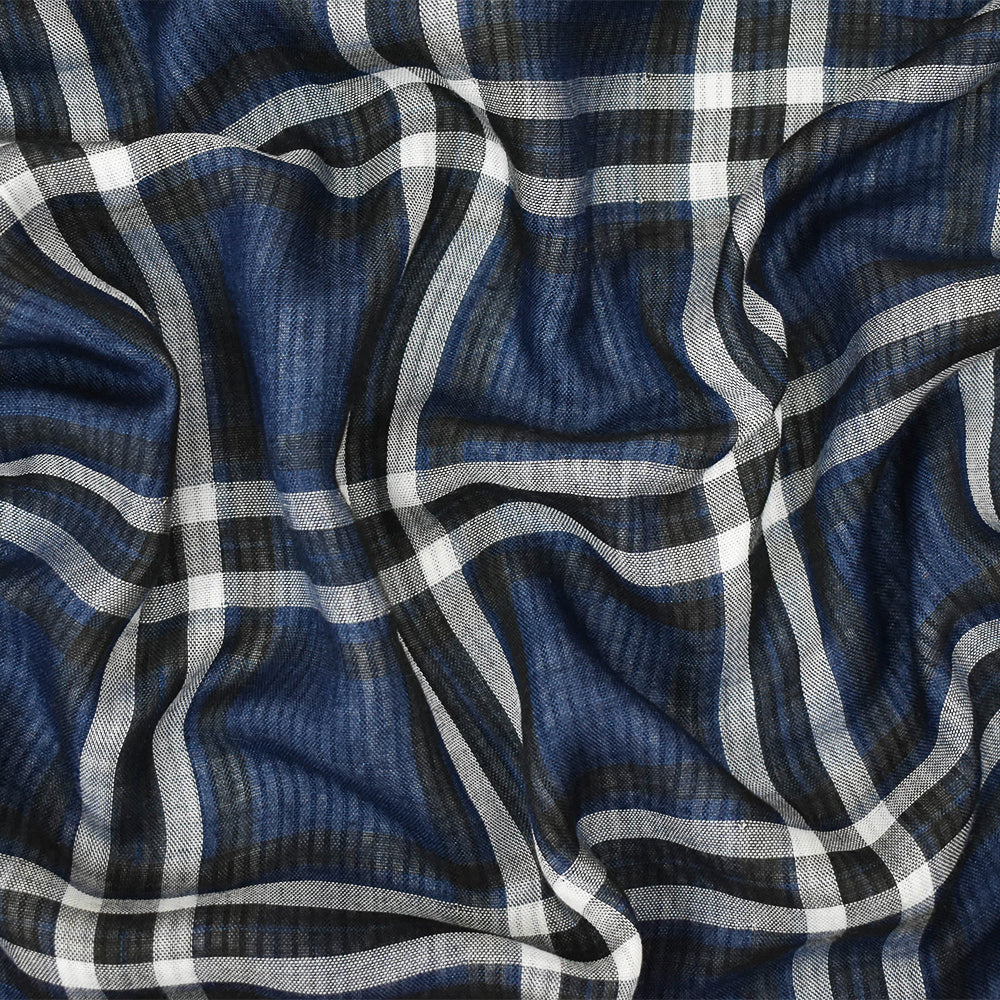 Blue-Black-Multi Famous Maker Cotton Plaid Double Gauze Woven Fabric