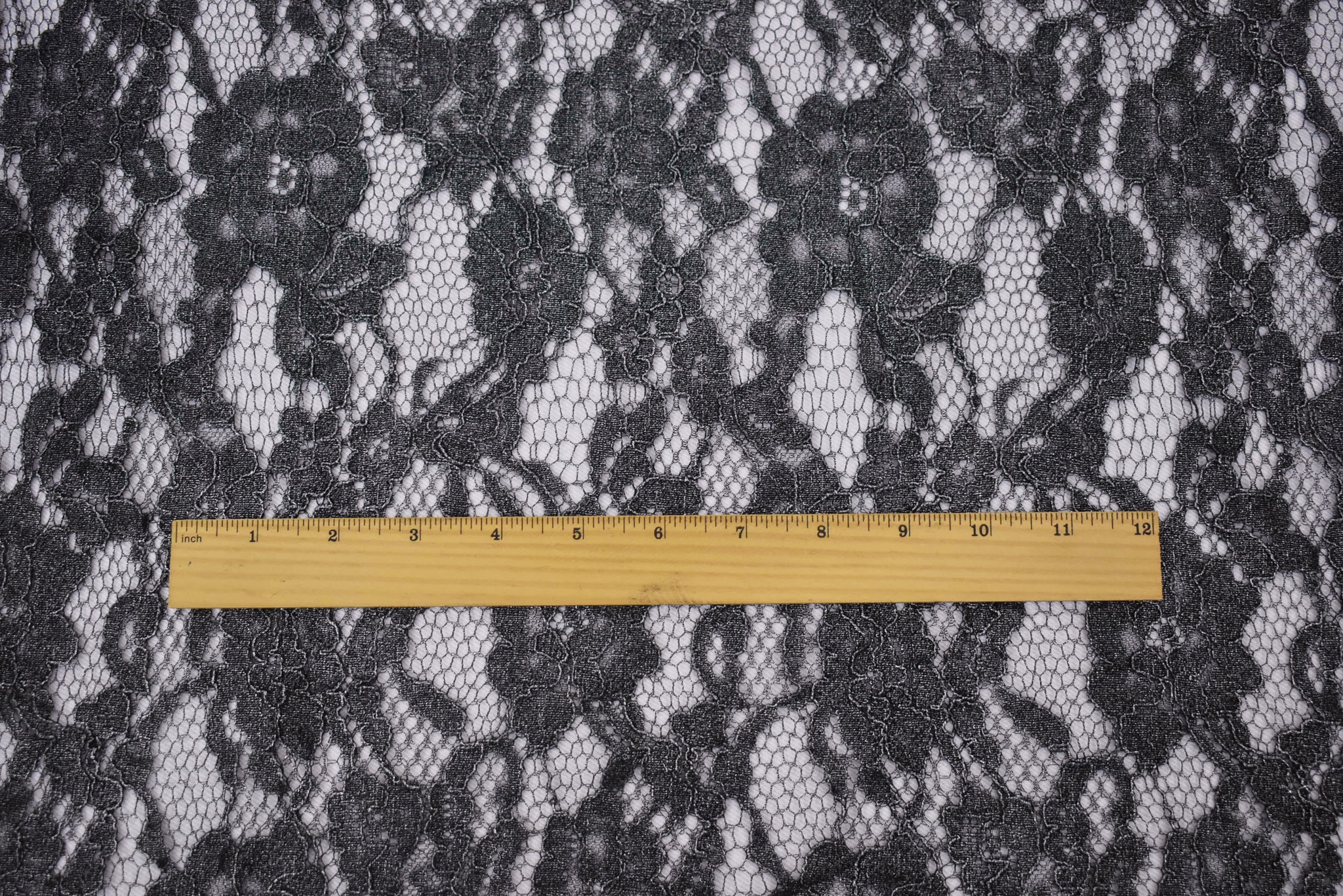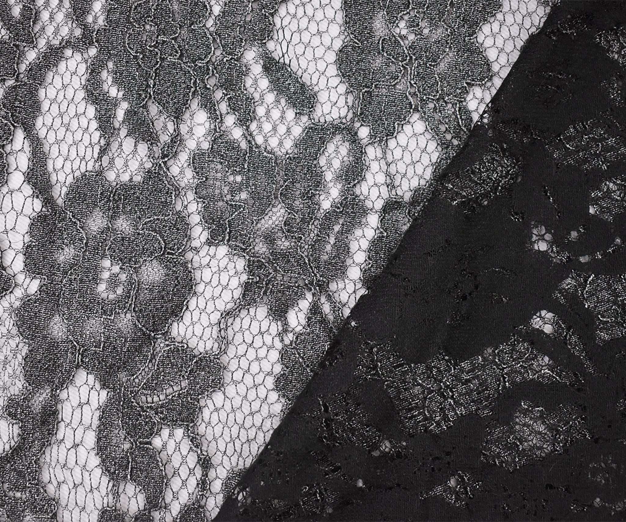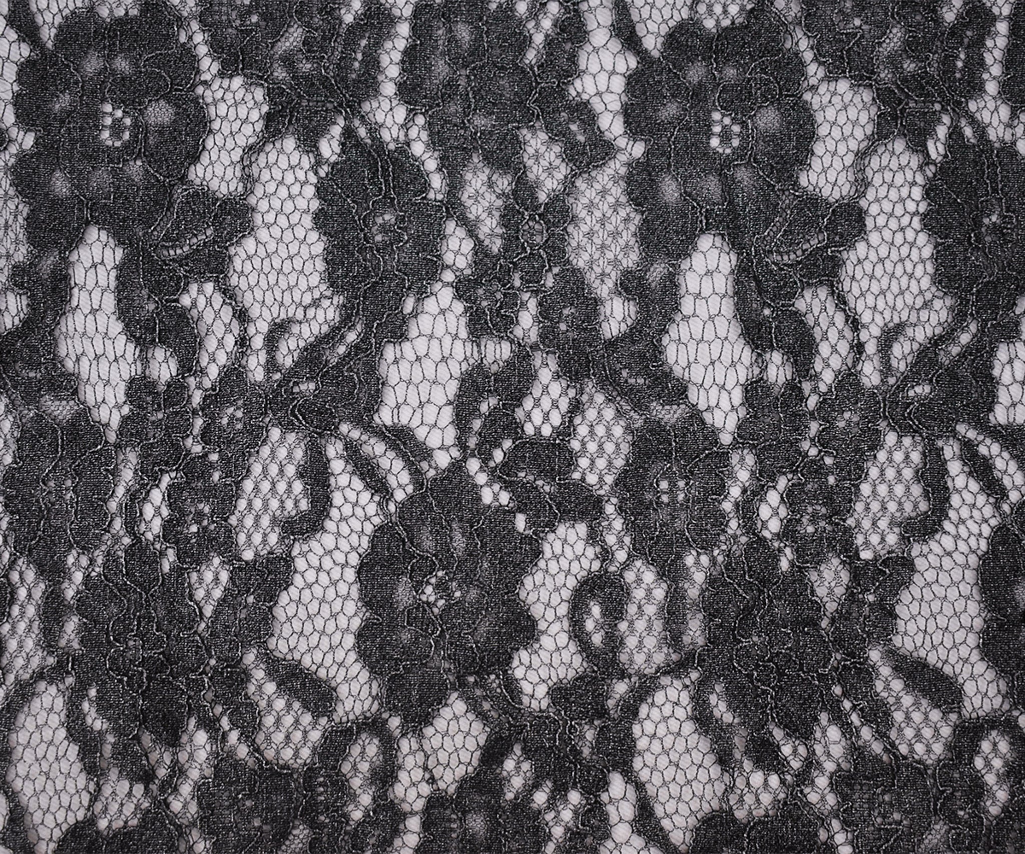 Black-Silver Cotton Polyester Crochet Floral Lace Mesh Knit Fabric
