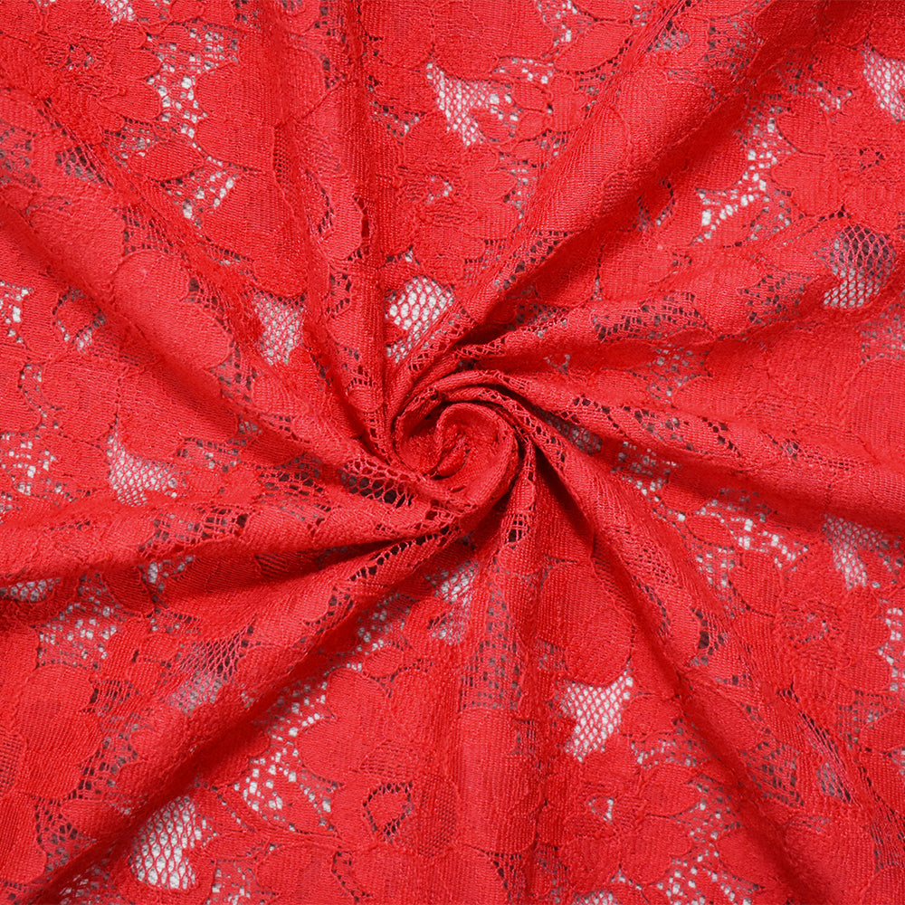 Red Cotton-Polyester Floral Crochet Lace Knit Fabric