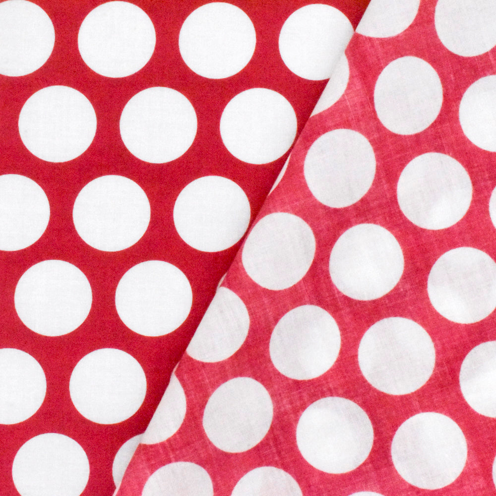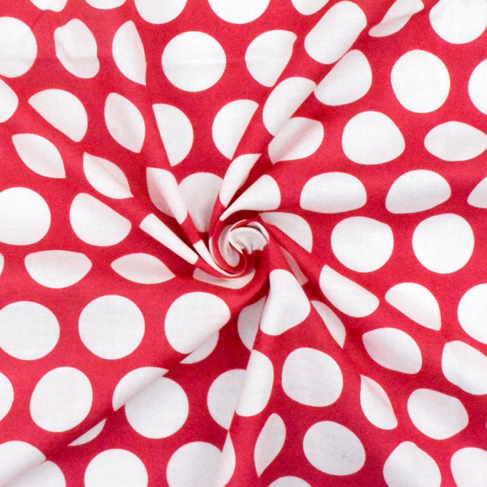 Lipstick Pink-Ivory Dot Printed Cotton Lawn Woven Fabric