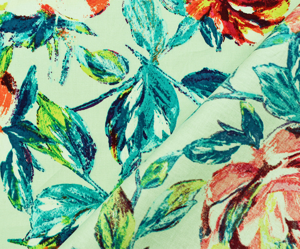 Mint Green-Multi Cotton Floral Print Stretch Spandex Poplin Woven Fabric