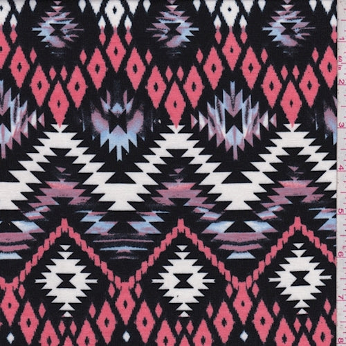 1 1/2 YD PC-Black/Coral Southwest Print Jersey Knit Fabric