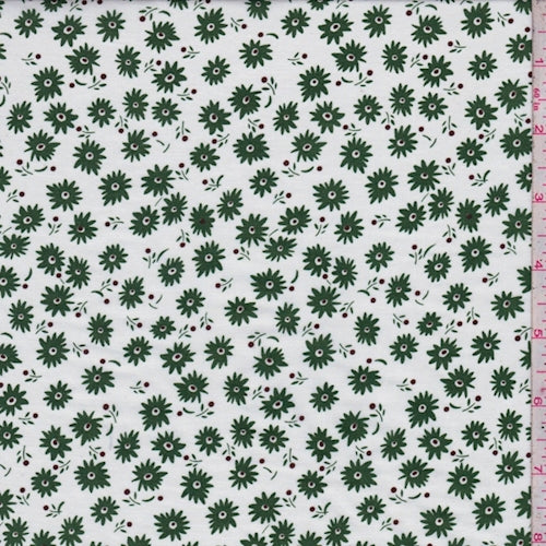 1 1/2 YD PC-White/Forest Fringe Floral Cotton Fabric