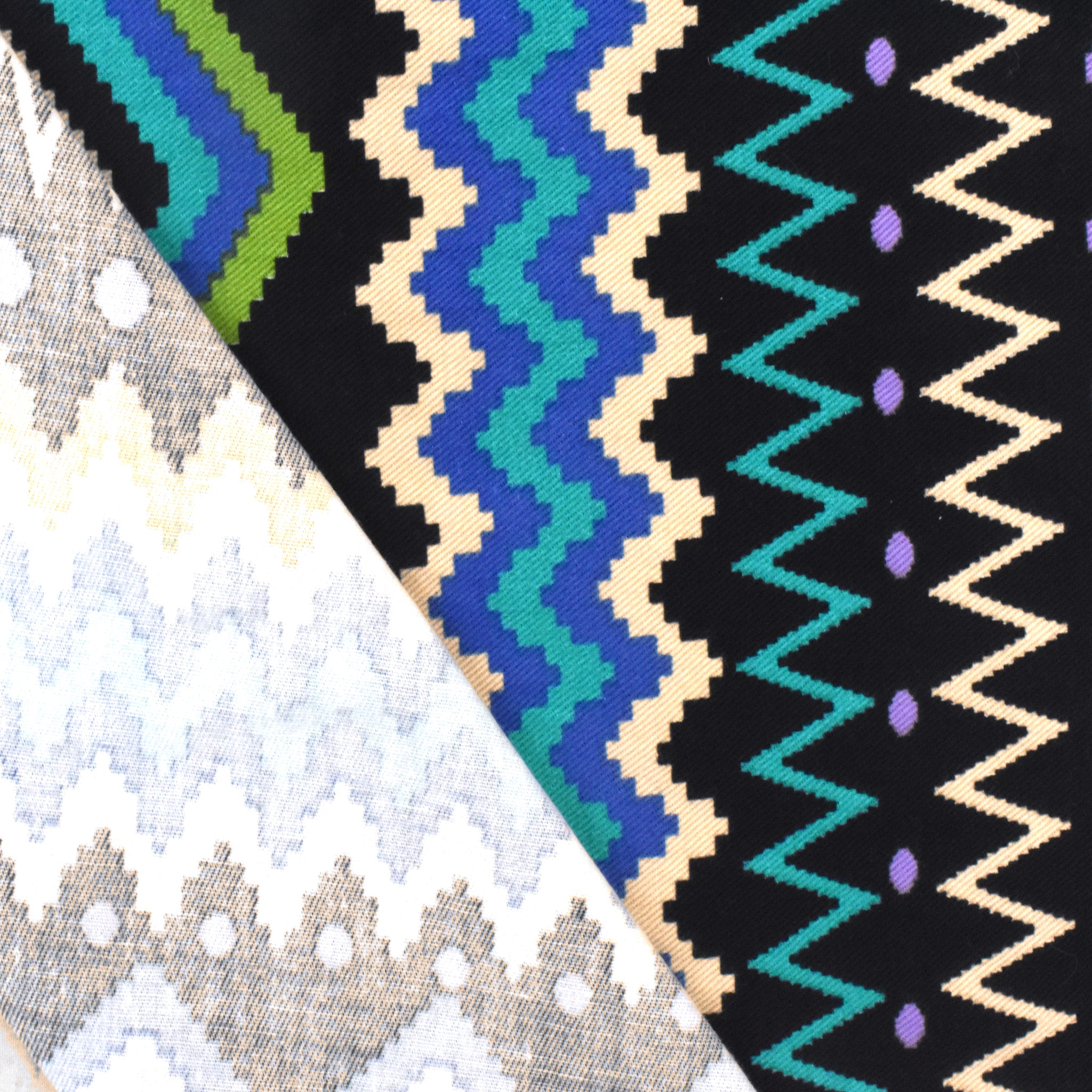 1 5/8 YD PC -100% cotton twill woven fabric printed with a pixelized chevron pattern and dots in a striped arrangement