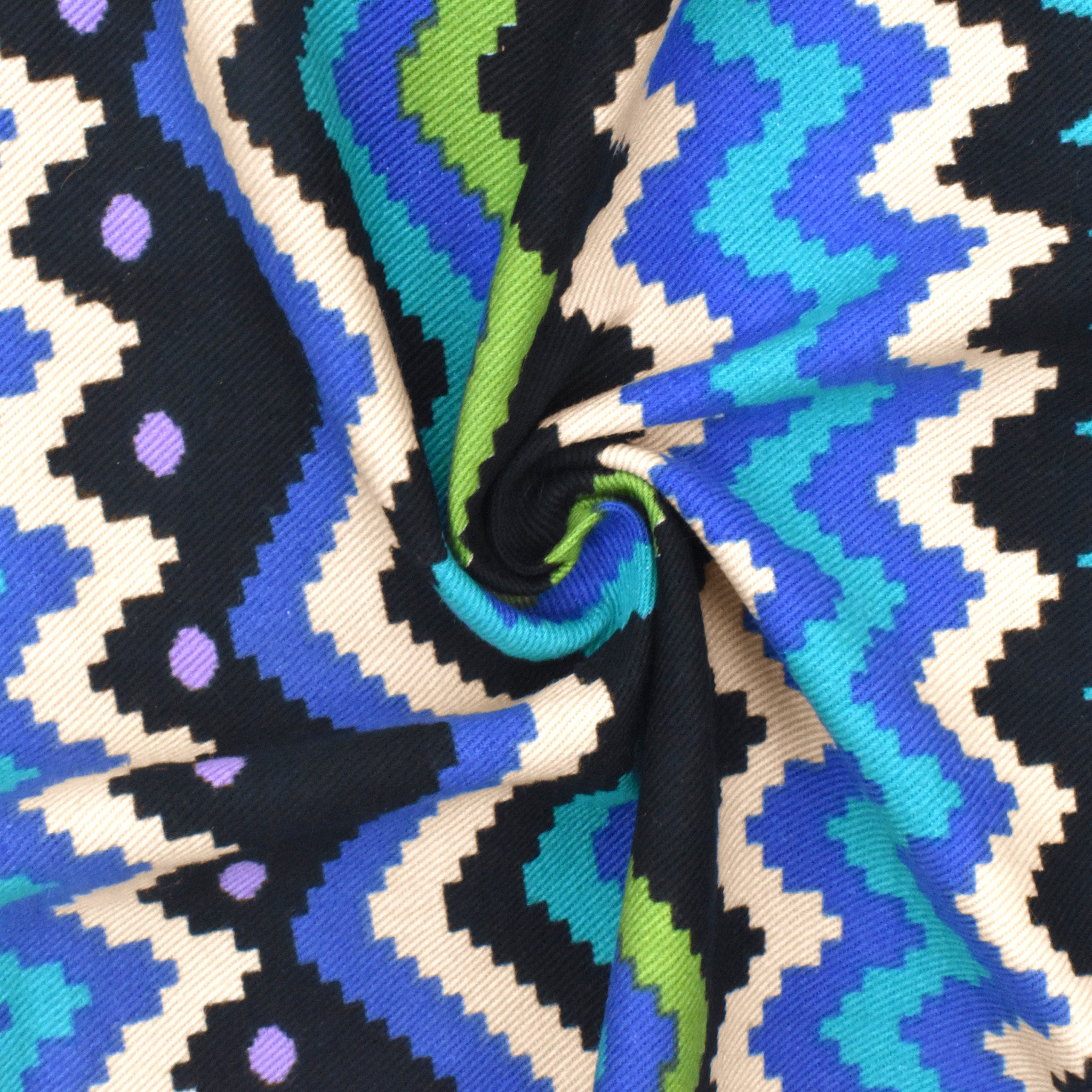 1 5/8 YD PC-Blue-Lavender-Multi Cotton Pixel Chevron Printed Twill Fabric
