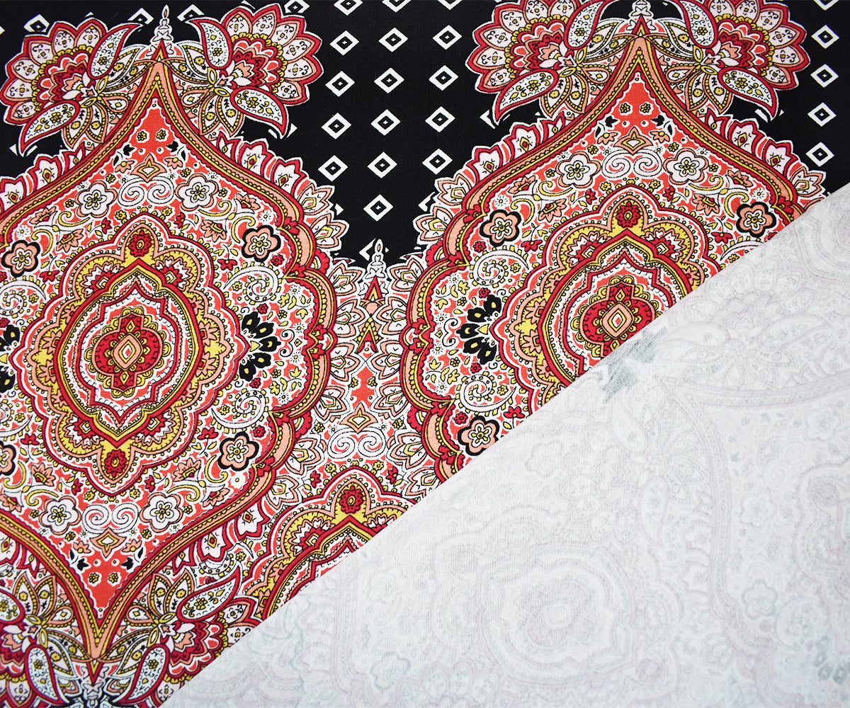 4 YD PC-Orange-Black-Multi Cotton Stretch Spandex Moroccan Printed Jersey Knit Fabric