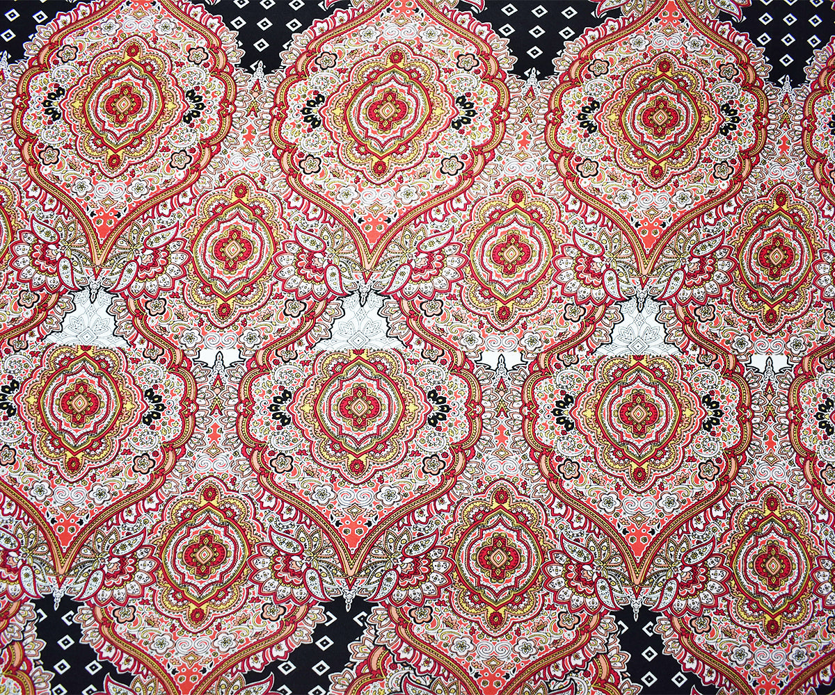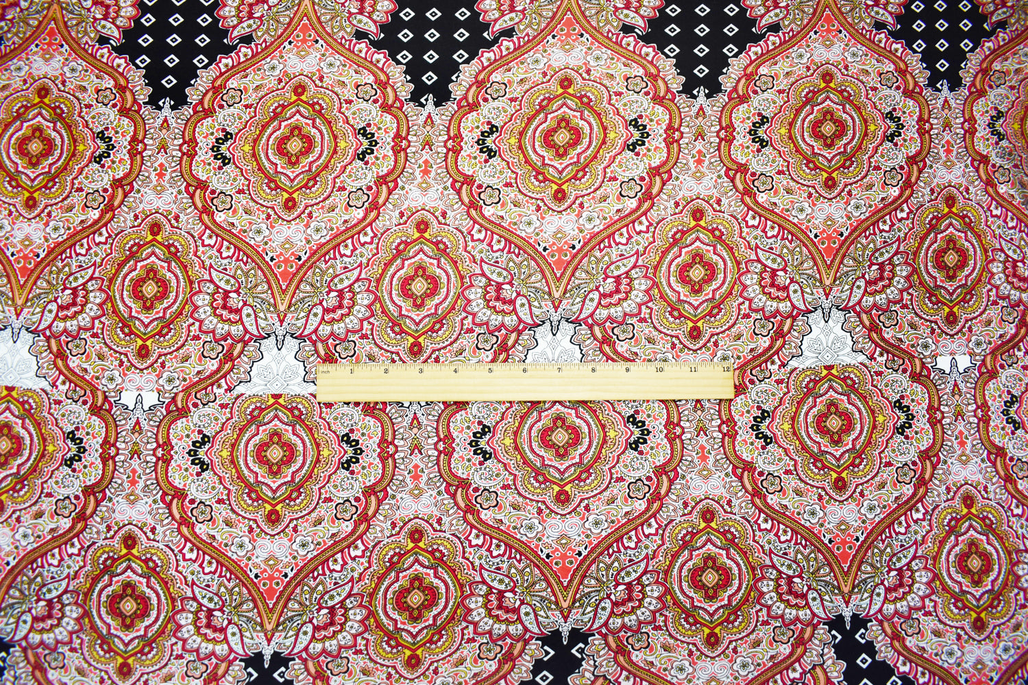 4 YD PC -Orange-Black-Multi Cotton Stretch Spandex Moroccan Printed Jersey Knit Fabric