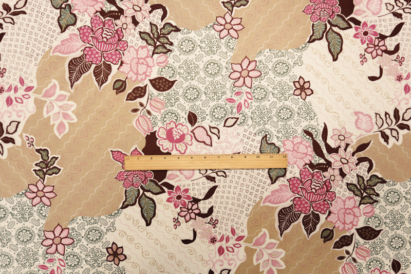 Beige-Ivory-Multi Cotton Floral Printed Lawn Woven Fabric