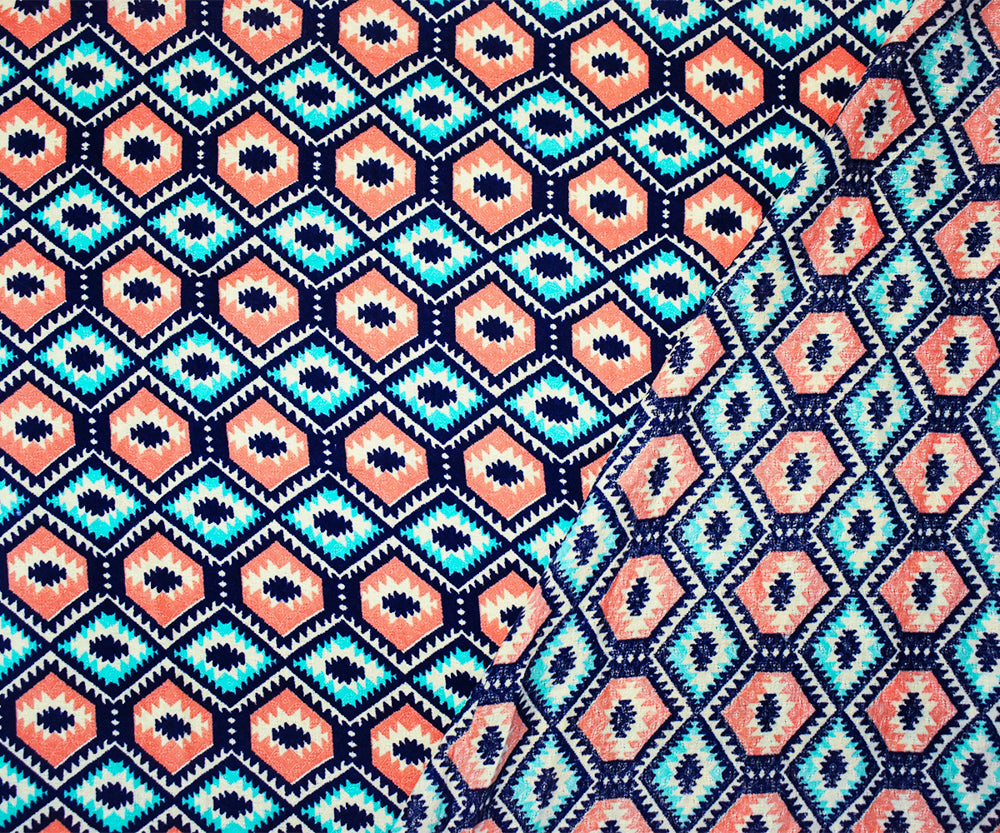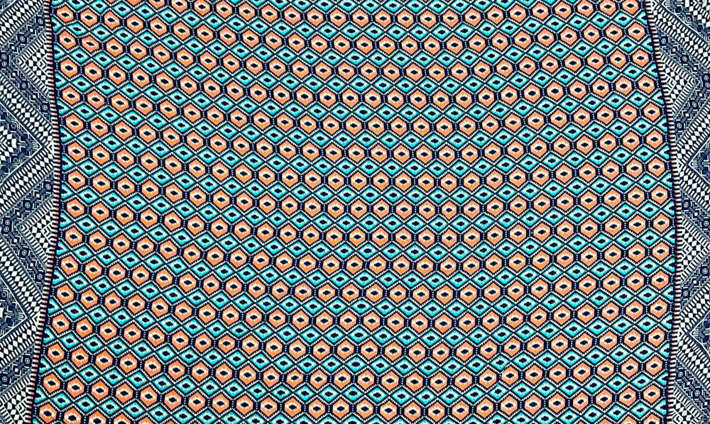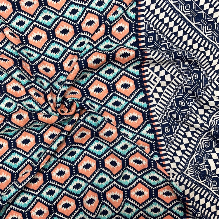 Coral-Teal-Multi Cotton Aztec Border Printed Dobby Woven Fabric