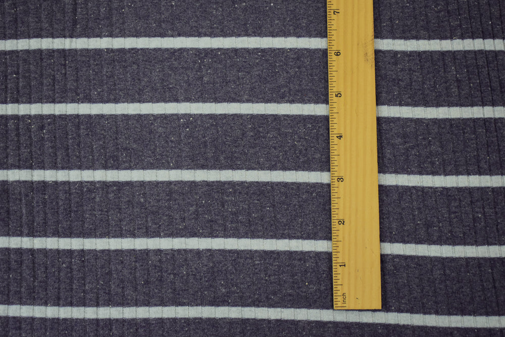 Dusty Blue-Gray Cotton-Poly Stretch Spandex Stripe Rib Knit Fabric