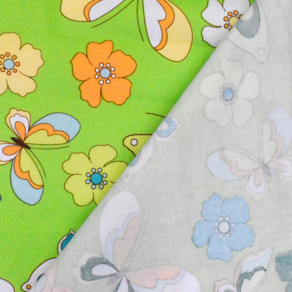 Green-Multi Floral Butterfly Print Stretch Cotton Poplin Fabric