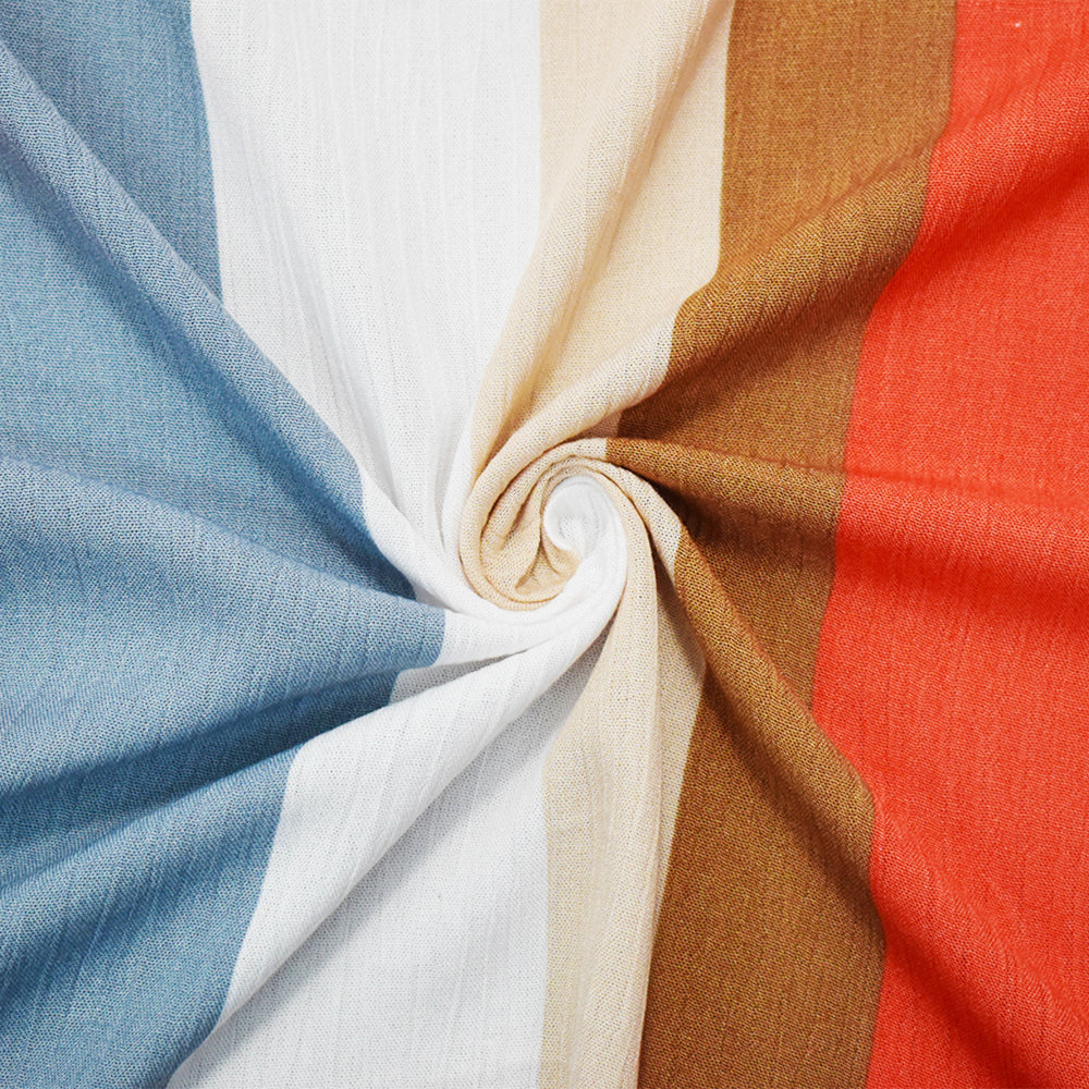 Orange-Gray-Multi Cotton Stripe Printed Crinkled Gauze Woven Fabric