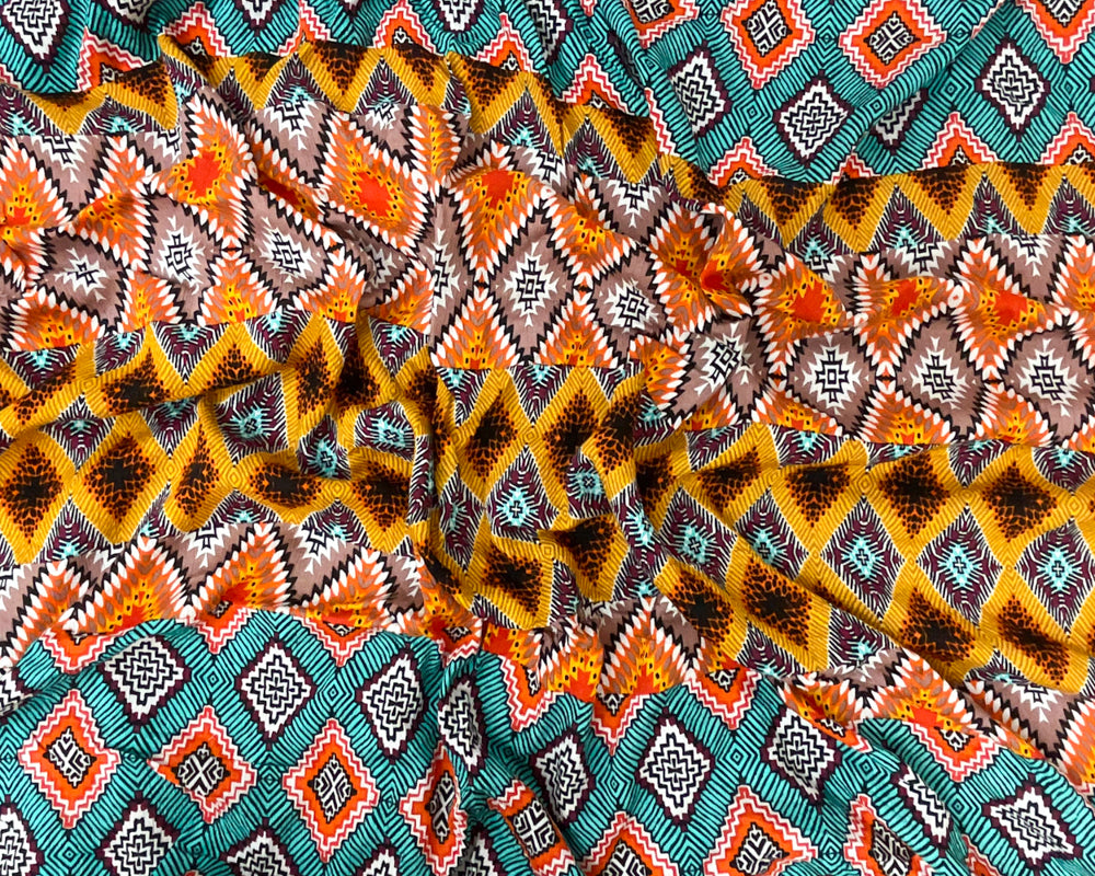 Orange-Multi Multi Cotton Aztec Printed Gauze Woven Fabric
