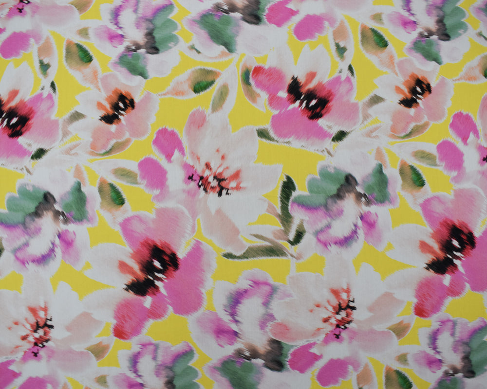 Pink-Yellow-Multi Cotton Floral Printed Broadcloth Woven Fabric