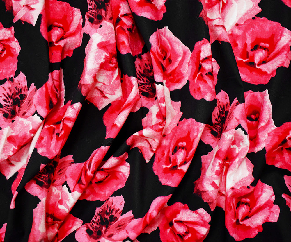 Red-Pink-Black Floral Printed Stretch Spandex Poplin Woven Fabric