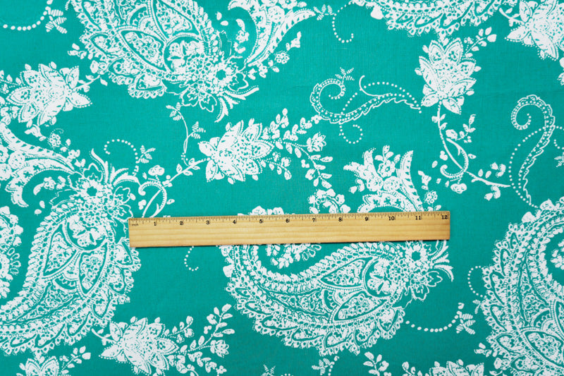 Teal-White Cotton Paisley Printed Poplin Woven Fabric