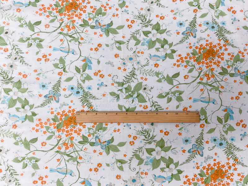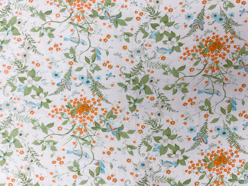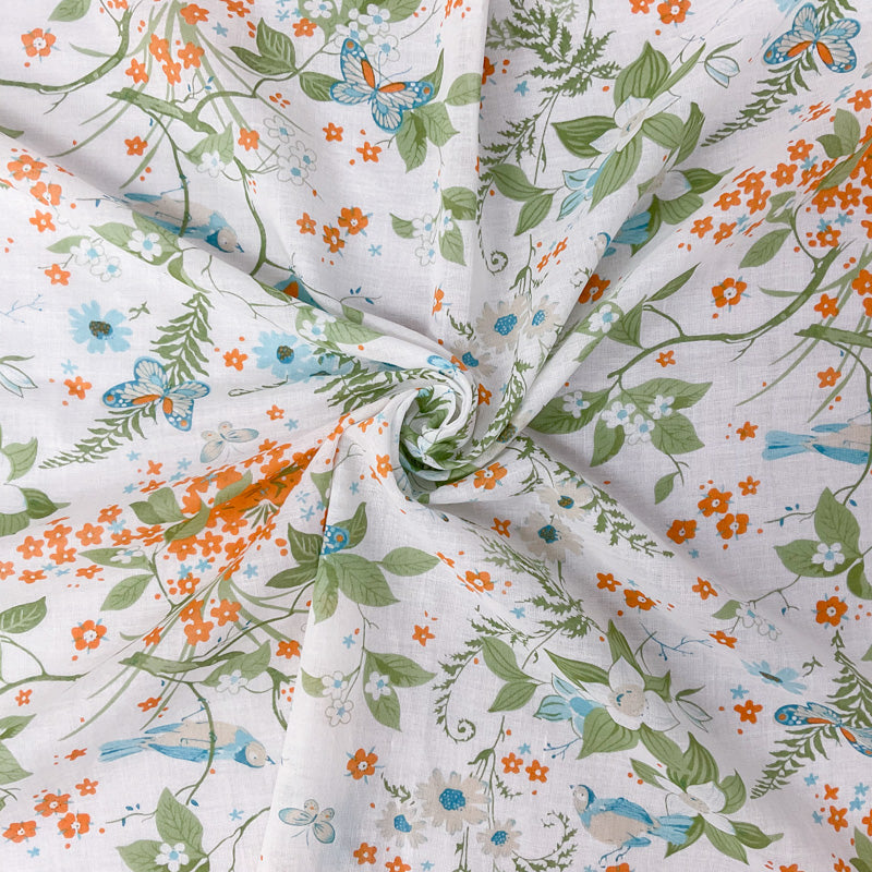 White-Green-Multi Cotton Floral Printed Gauze Woven Fabric