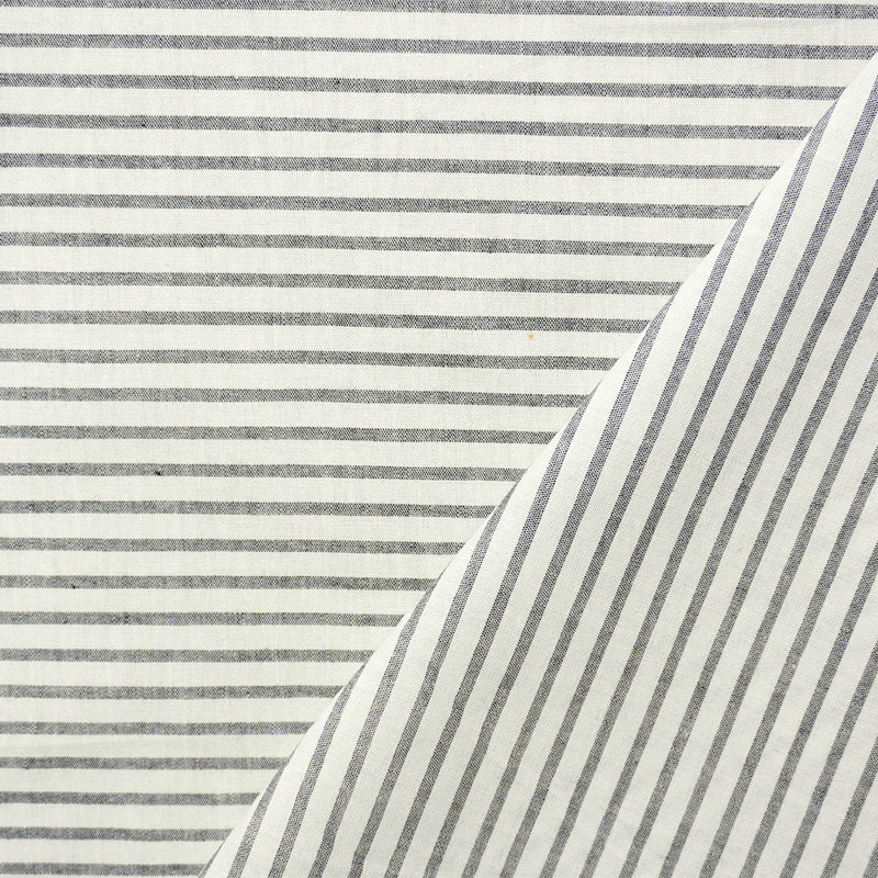 Black-White Cotton-Rayon Stripe Poplin Woven Fabric