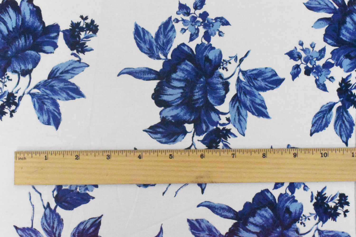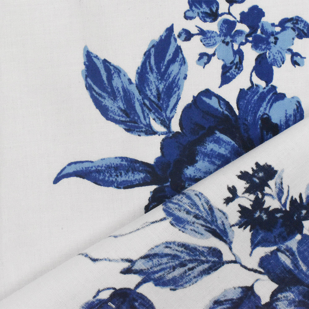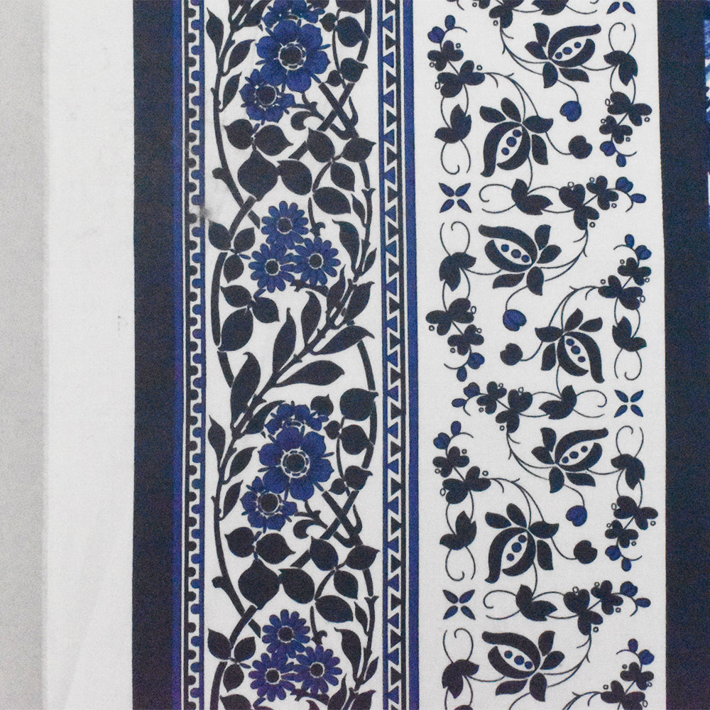 Blue-White-Multi Floral Border Printed Stretch Cotton Poplin Woven Fabric