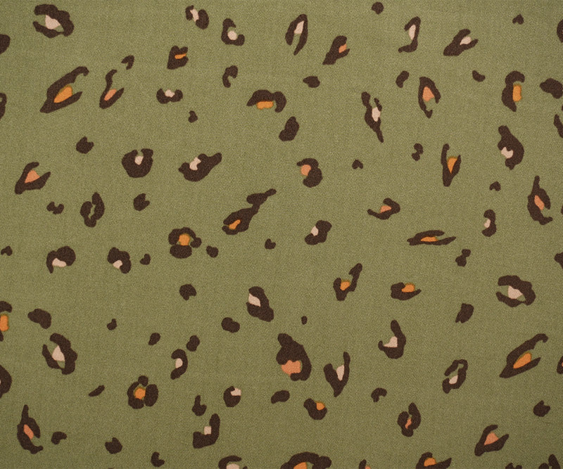 -This cotton twill features a leopard print, combining natural fiber comfort with a durable weave.