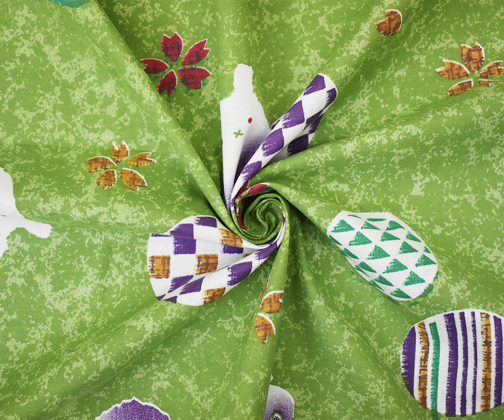 Green-Purple-Multi Abstract Bunny Art Printed Cotton Shirting Woven Fabric
