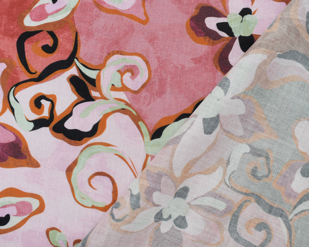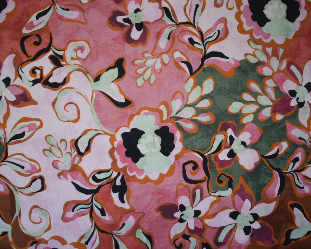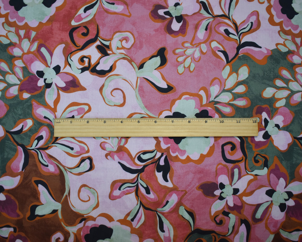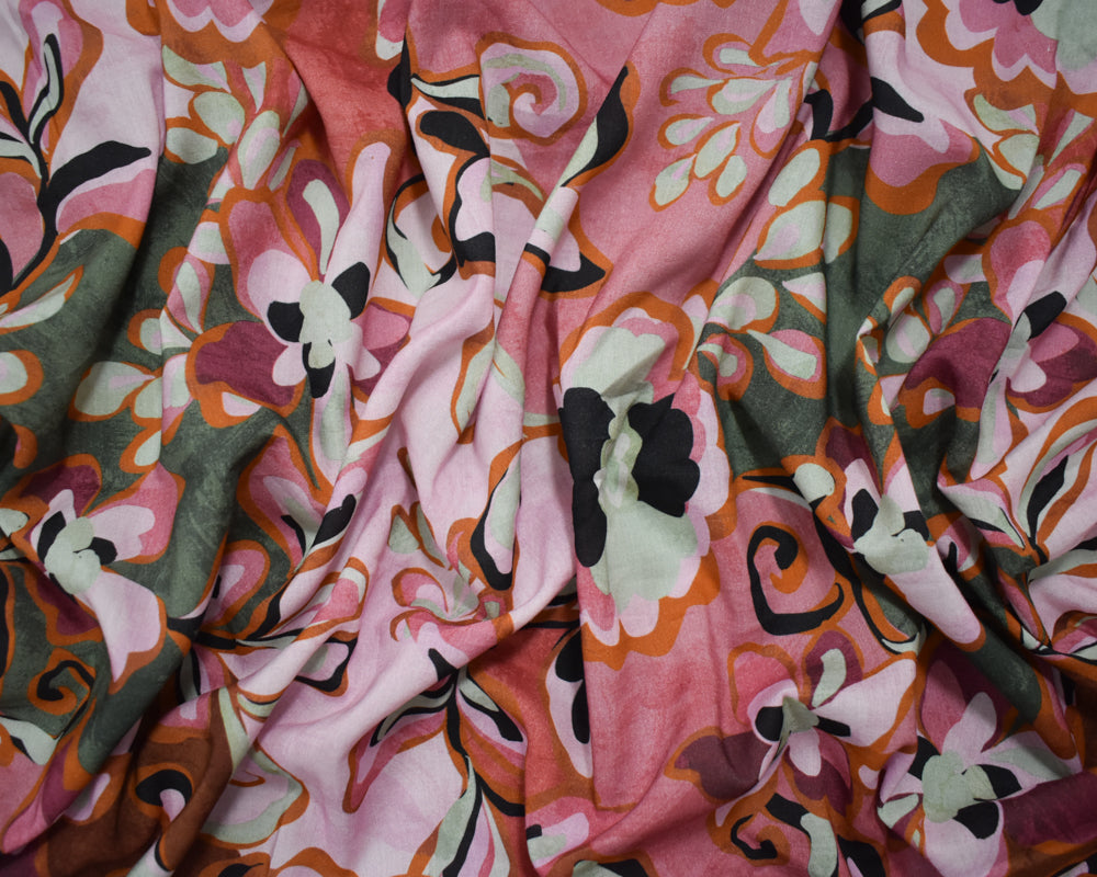 Pink-Red-Multi Cotton-Rayon Floral Printed Lawn Woven Fabric