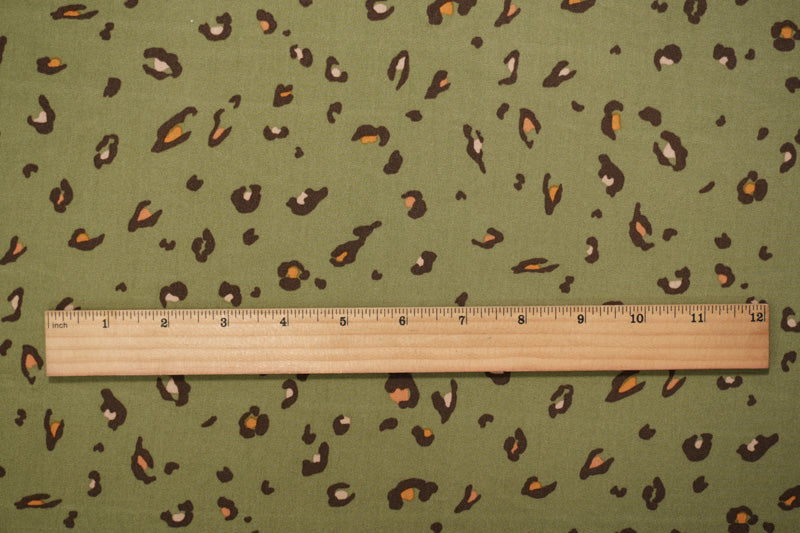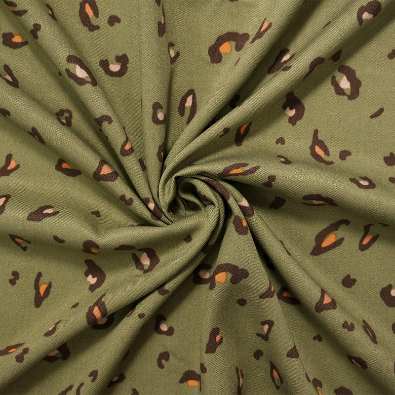 Green-Brown-Multi Cotton Leopard Printed Twill Woven Fabric
