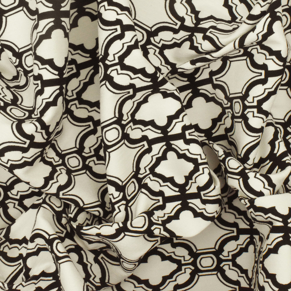 Ivory-Black Fancy Quatrefoil Printed Stretch Twill Woven Fabric