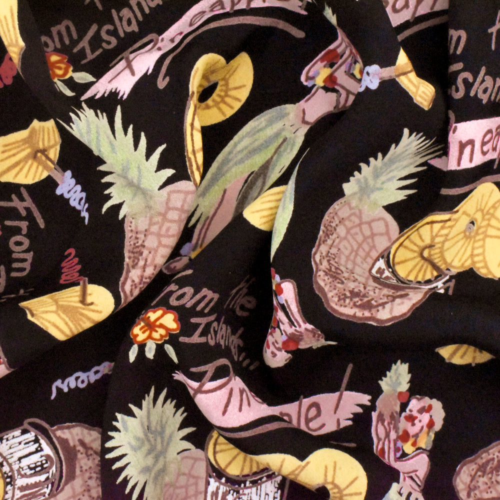 Black-Yellow-Multi Hawaii Vibes Printed Rayon Crepe Faille Woven Fabric