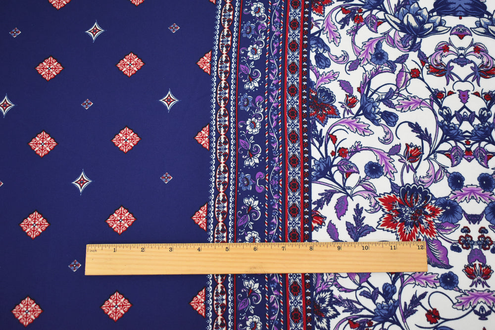 Blue-Red-Multi Floral Border Printed Poly Crepe Momie Georgette Fabric