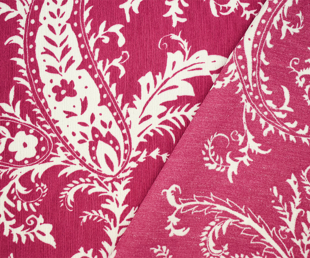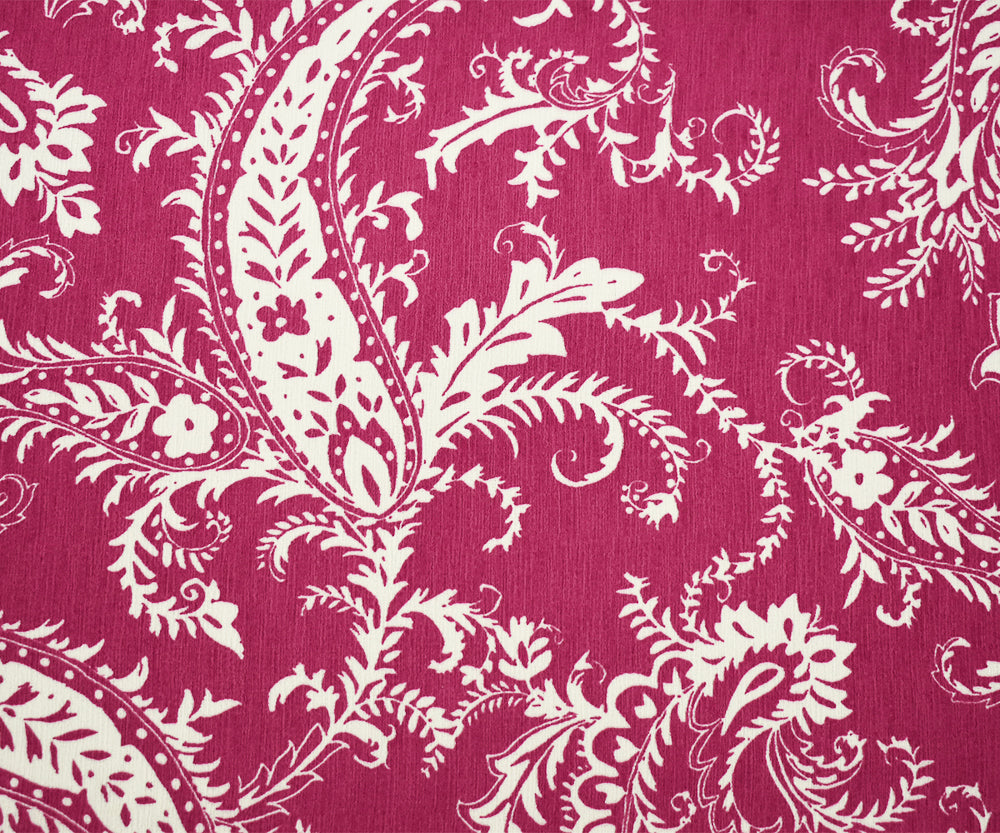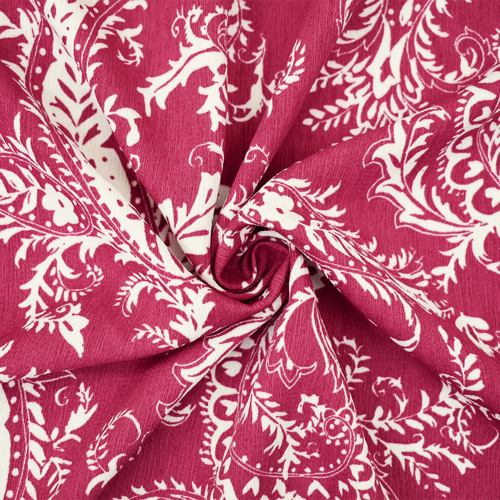 Blush Red-White Paisley Vine Printed Poly Slub Momie Crepe Woven Fabric